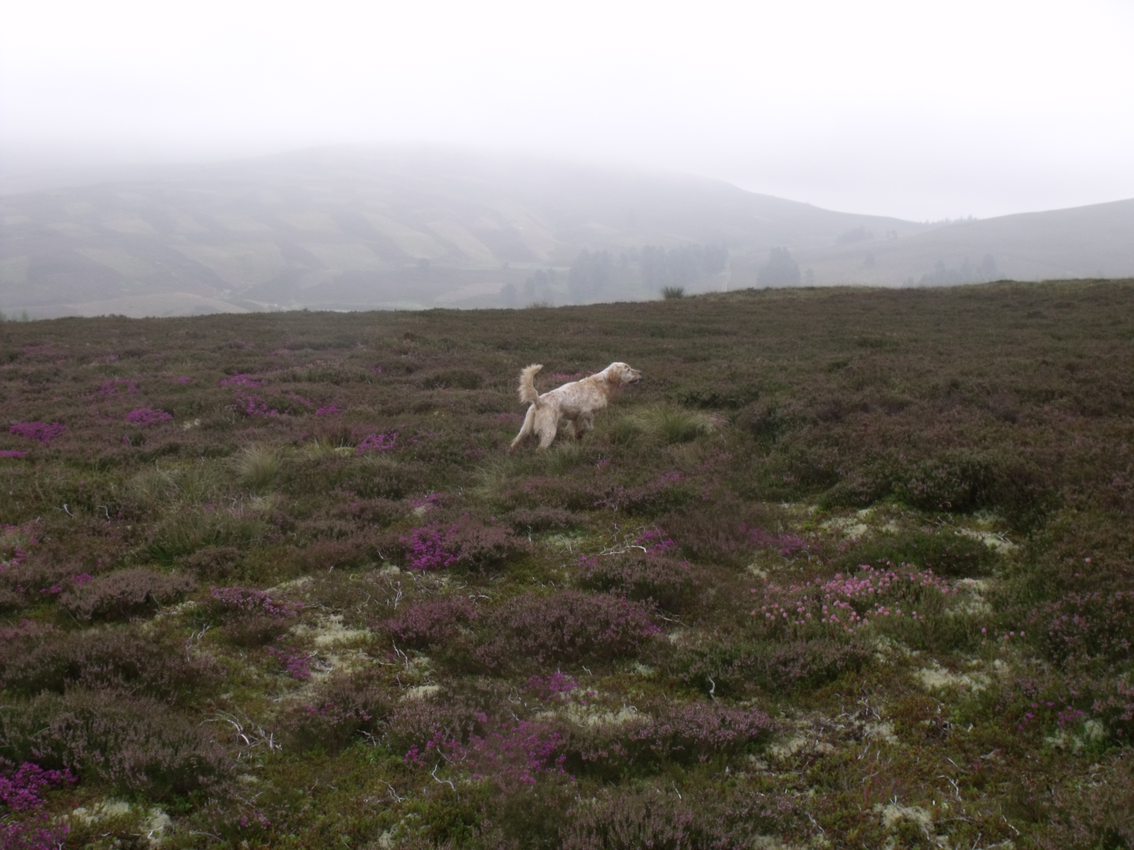 FTCh Blackstairs Geronimo on point on the summer moor.